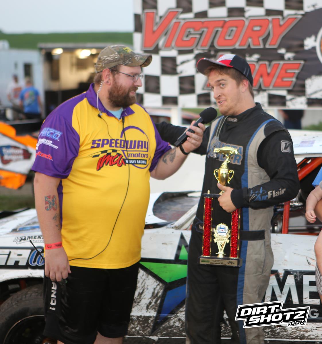 Ledger would have to chase down and pass Goos at lap 14 of the MSTS feature. He would go on to get the win while the battle for second was fierce. Jody Rosenboom would take that spot just ahead of Jack Dover. Goos crossed the line fourth with Ryan Bickett in fifth. Dover would claim the Cressman Sanitation Hard Charger Award for his efforts.