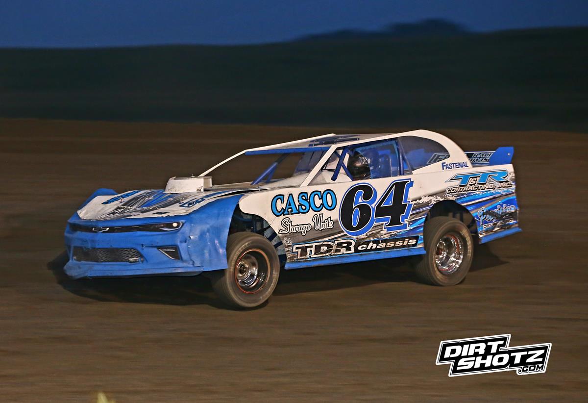 Cory Yeigh took over control of the T&R Contracting Late Model Street Stock feature on lap eleven from his ninth starting spot. The driver of the Casco Storage Units #64 would go from there to his fourth I-90 win of the year and career win 31 at the speedway. Evan Miller was second ahead of Zach Olivier. Tim Dann crossed the line fourth after starting in position 14 - that effort earned him the Precision Drywall Hard Charger Award for the night. Matt Steuerwald completed the top five.