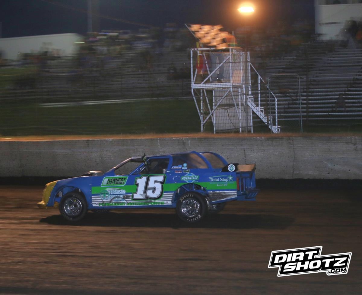 Brandon Ferguson was out front for all 18 laps of the First Interstate Bank Late Model Street Stock feature. The victory is the second in his career in the division at the track – adding to two career hobby stock wins. In the special pit stop event, Cory Yeigh’s crew got their driver the lead with the fastest pit stop – earning the $150 bonus for doing so. Yeigh would ever look back en route to the special win.