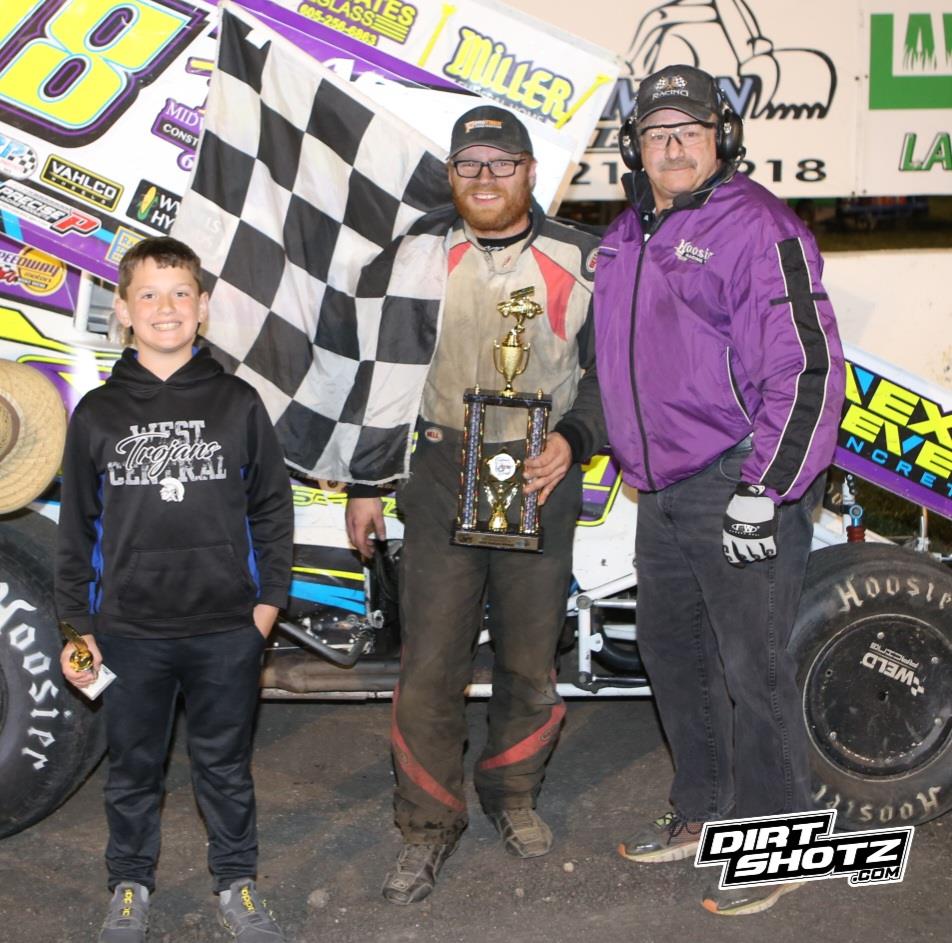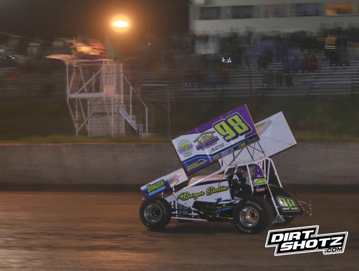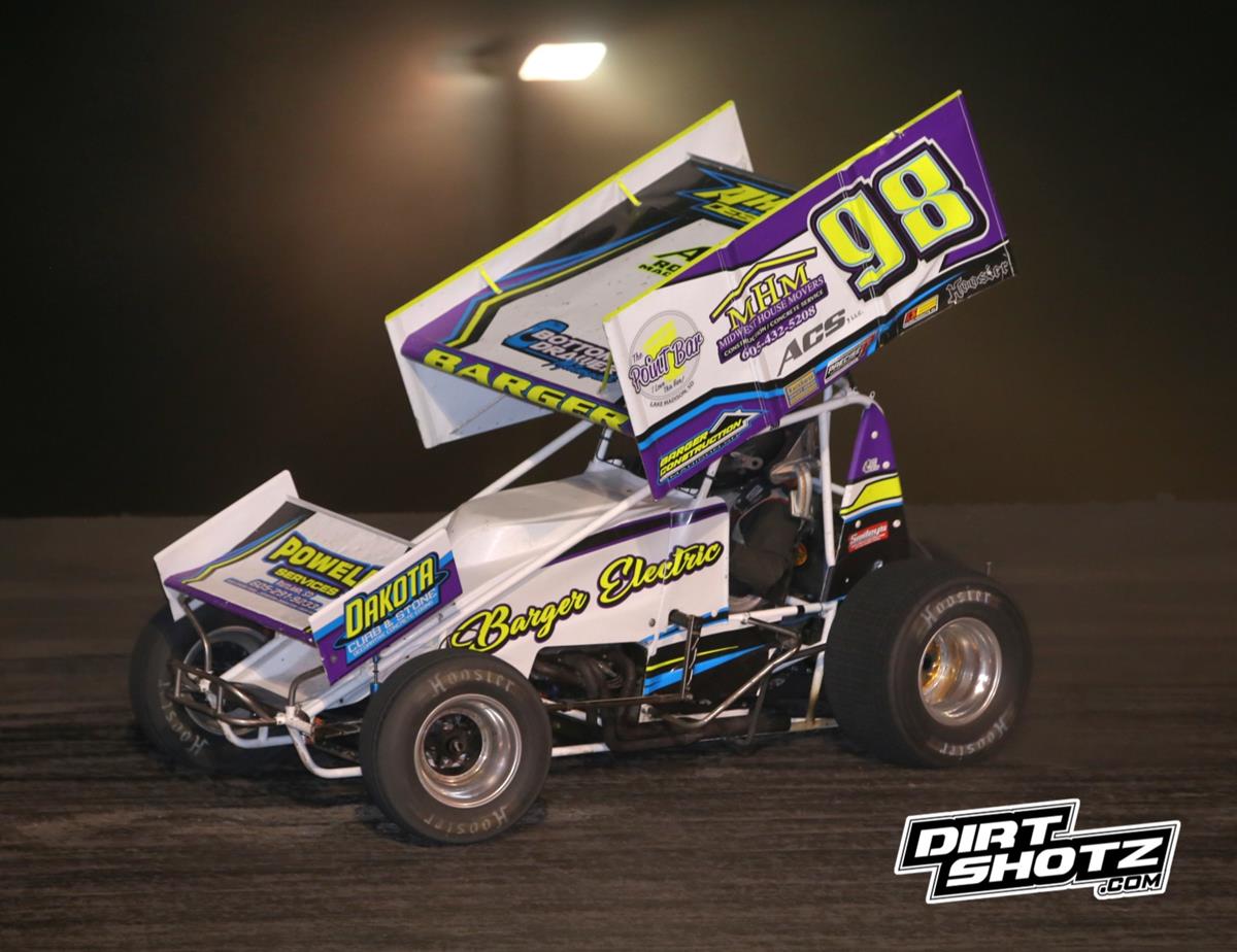 In the Spielman Excavating IMCA Sprint main, Barget would never give up the lead. However, Koby Werkmeister was charging from tenth to second with Lee Goos going fourteenth to third. Laela Eisensschenk charged from twelfth to fourth ahead of Alec Mataya in fifth.