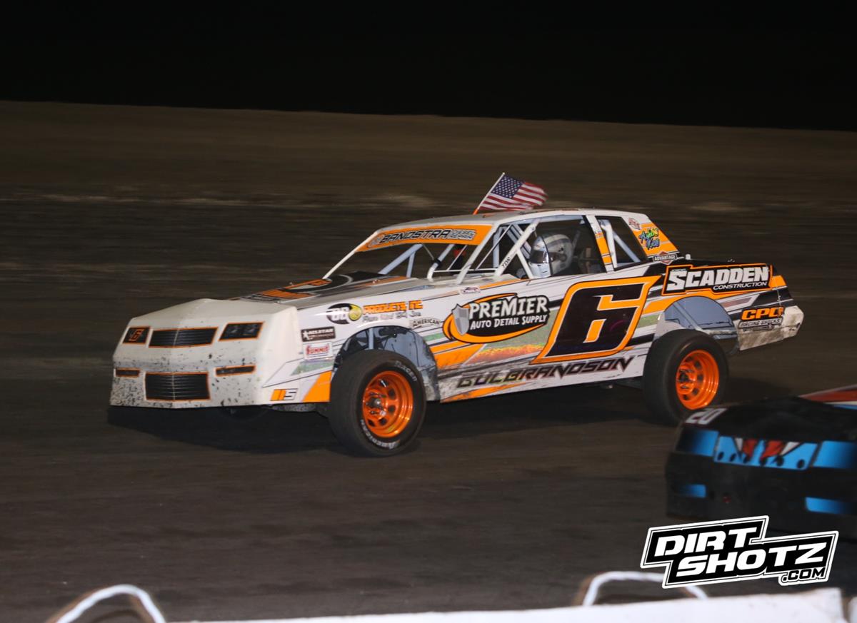 Gulbrandson took over the lead of the LawnSnow.com USRA Hobby Stock feature just as the field made it into the second half of the feature. Nick Brady was second. Travis Christensen, who was out front the opening six laps, was third with James Adams and Landon Krohn completing the top five.