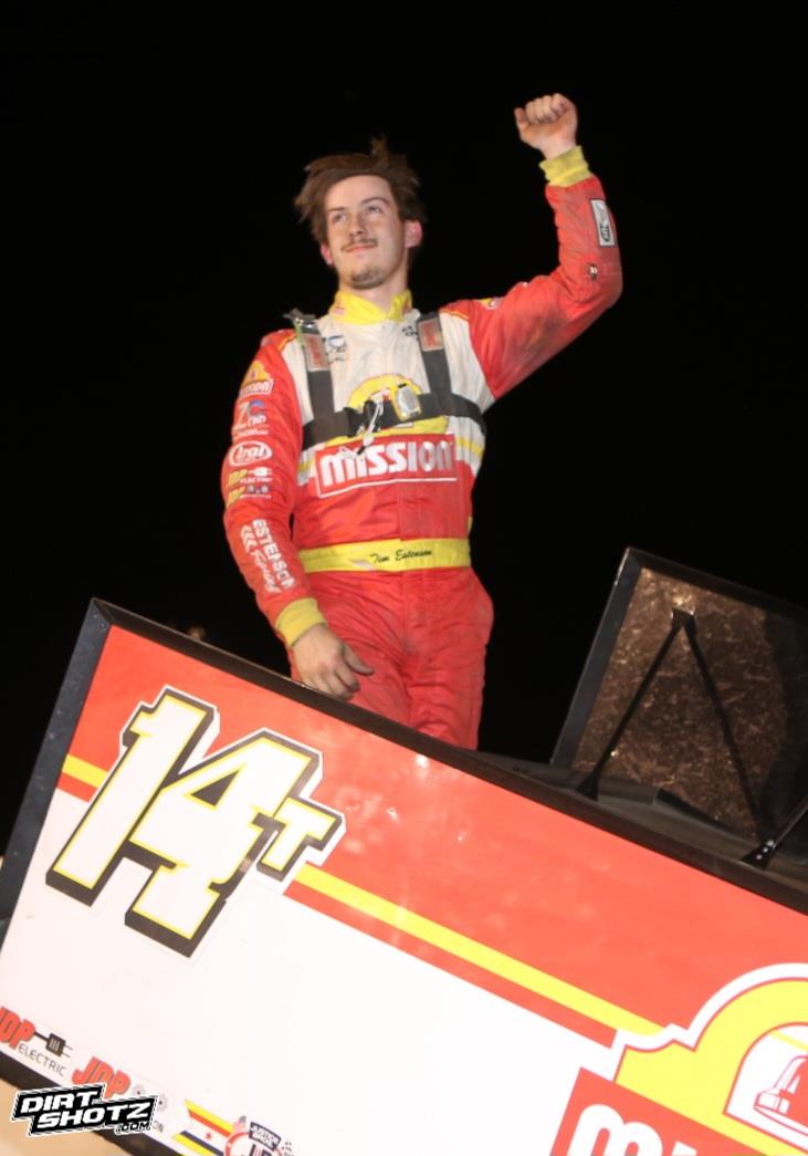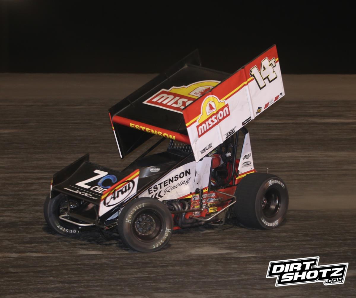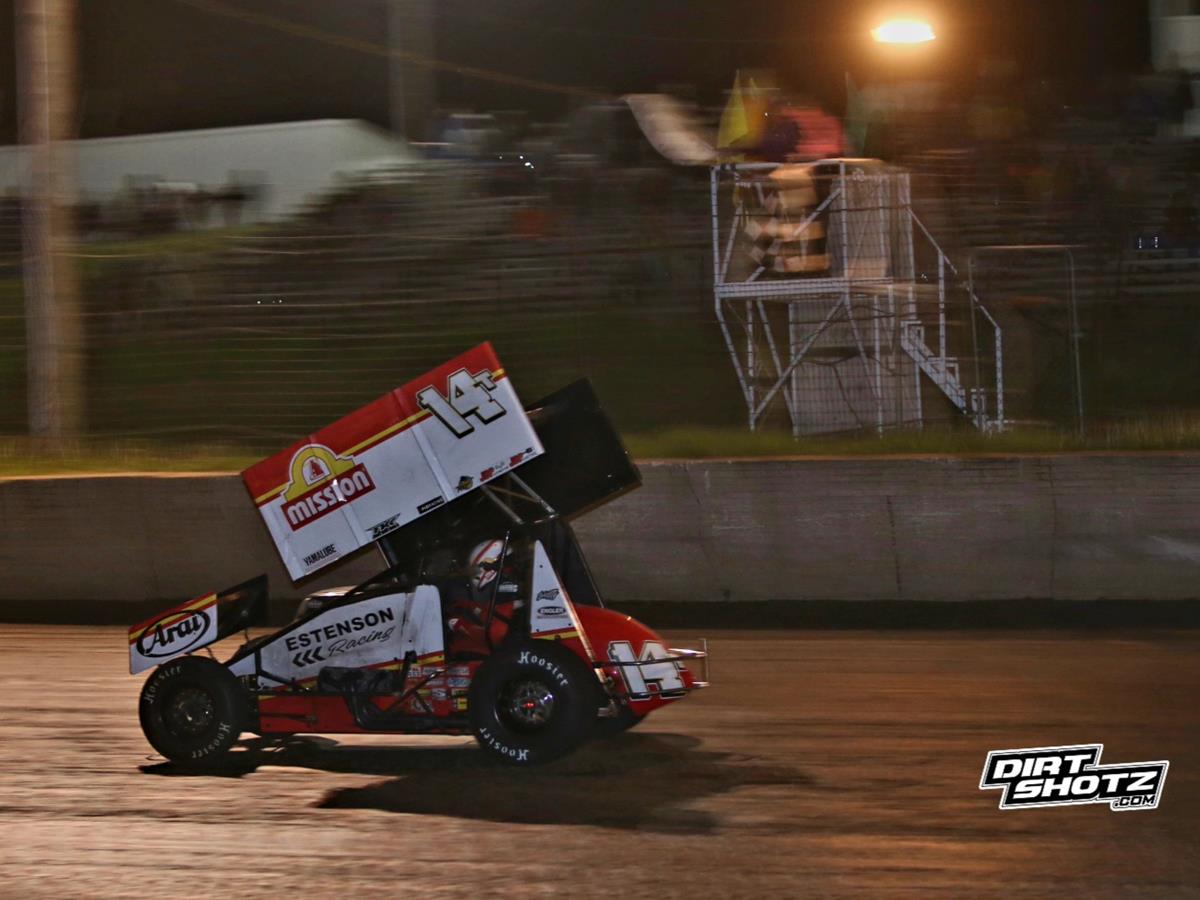 Estenson took the initial lead of the 410 sprint feature but was pressured early by Brenden Mullen. Mullen was making the move for the race lead when a caution negated the pass.